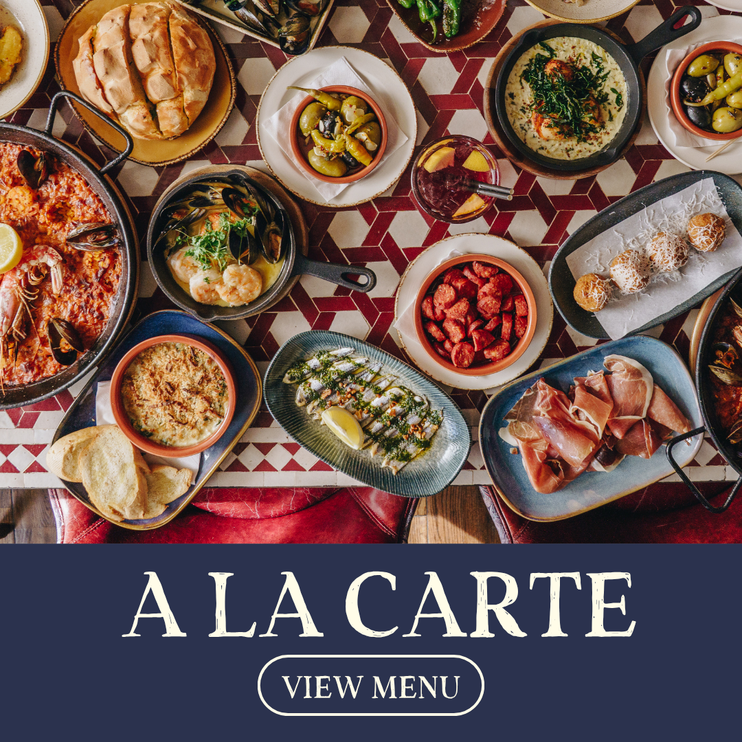 Our tapas menu is all about sharing the very best of Spain, with each dish thoughtfully crafted to delight your senses. We recommend selecting three plates per person, ensuring a perfect balance of flavours. From tender meats to fresh seafood and vibrant vegetarian options. It’s a truly social way to enjoy authentic Andalusian cuisine, with something for everyone.